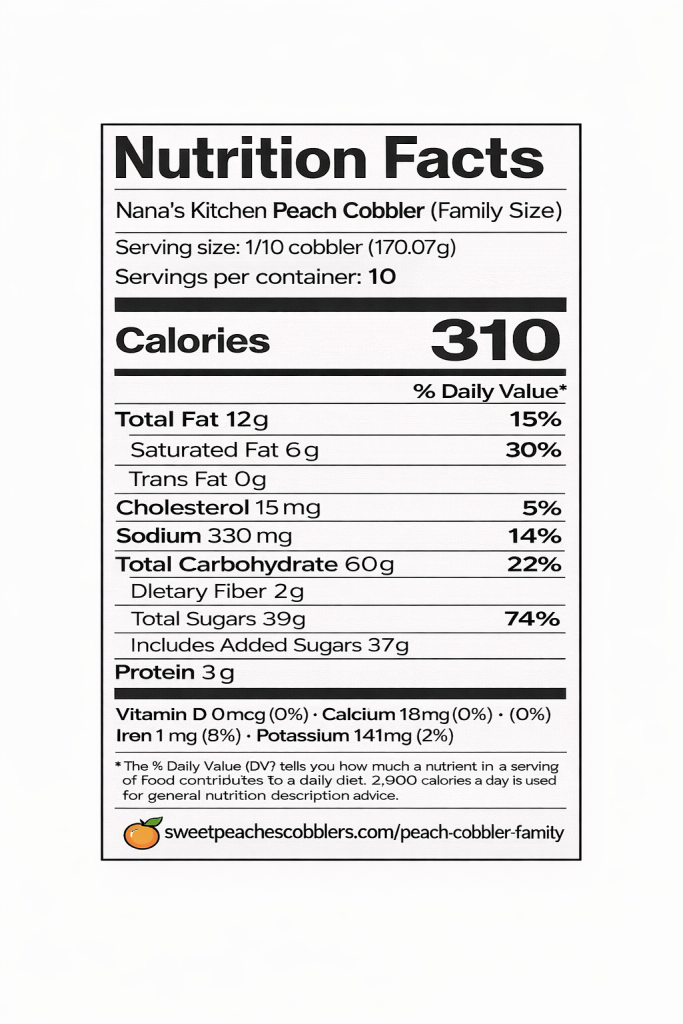 Family Peach Cobbler Nutritional Label