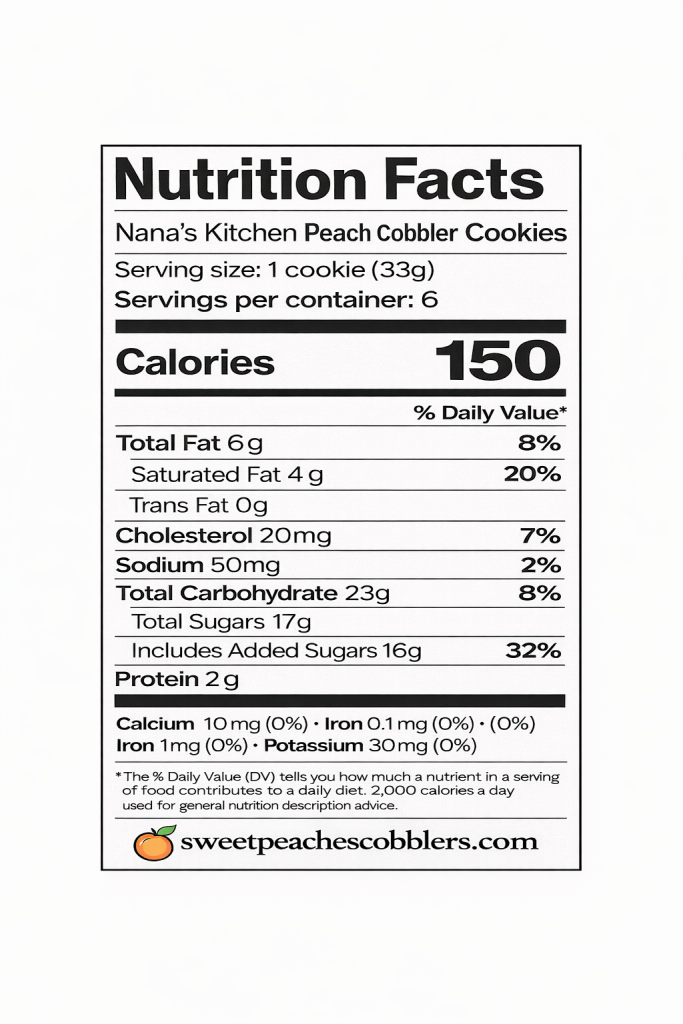 Frozen Peach Cobbler Cookies Nutritional Label